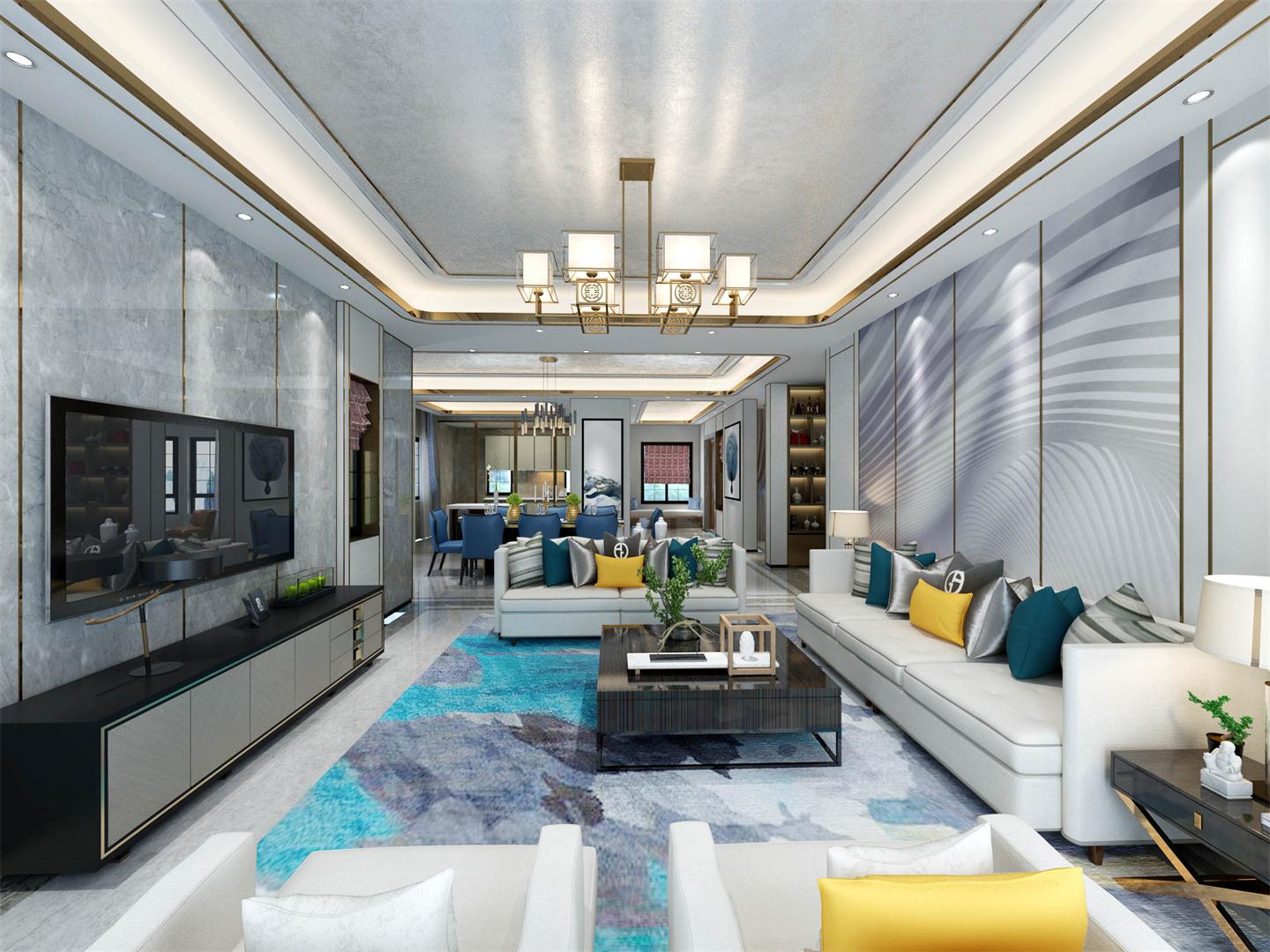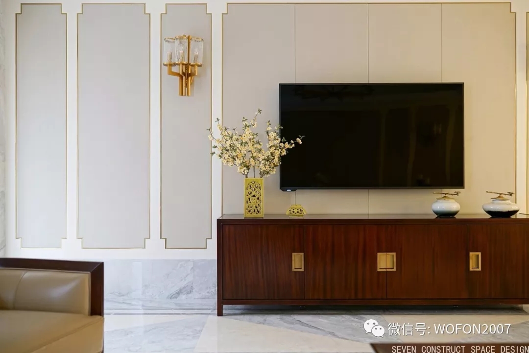 电视背景墙是客厅整个空间的视觉中心,一定要用心设计,不然客厅就过于平淡无奇了。电视背景墙的设计原则是:简洁、实用、不可喧宾夺主。